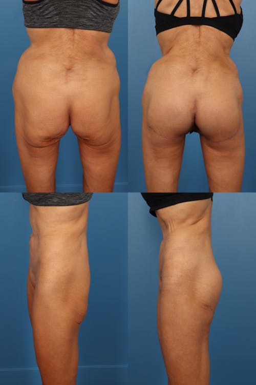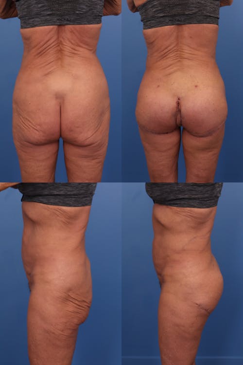 The thigh lift is a procedure during which skin and subcutaneous tissue are removed from the medial (inside) thigh or around the entire thigh. This procedure is used for cases where liposuction would not achieve a satisfactory result, such as having poor skin elasticity that prevents the skin from conforming after fat reduction