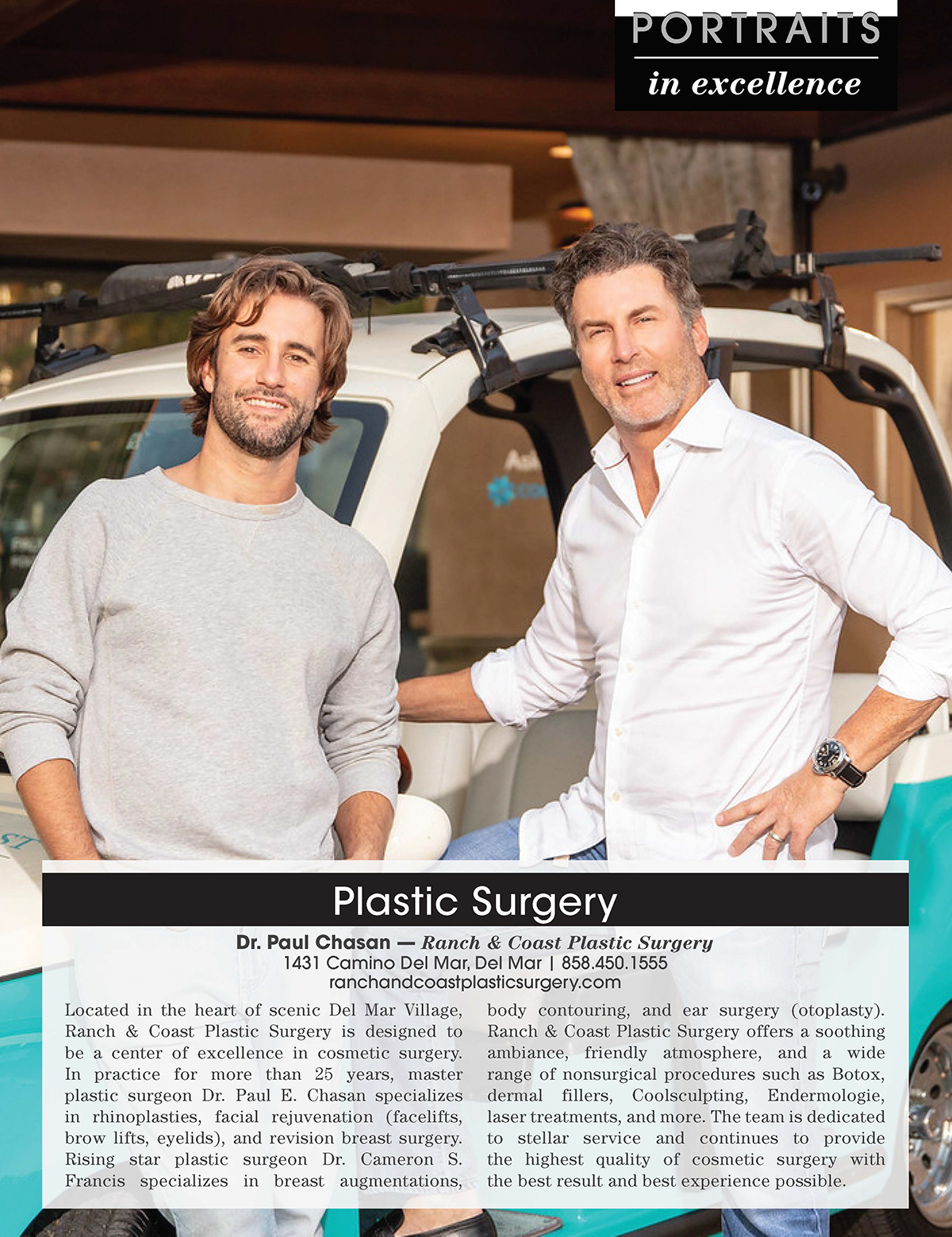 Plastic surgery can be a truly transformative experience, mainly when performed by a master in the art of plastic surgery. At Ranch & Coast Plastic Surgery, we are honored to be considered the premier plastic surgery provider in the San Diego and Del Mar regions. Our founder, Dr. Paul E. Chasan, is known as a “surgeon’s surgeon,” with a reputation for being asked to perform surgical enhancements on other medical professionals in his field. He is joined by Dr. Cameron S. Francis, a highly skilled and experienced plastic surgeon who provides personalized care and impressive results.